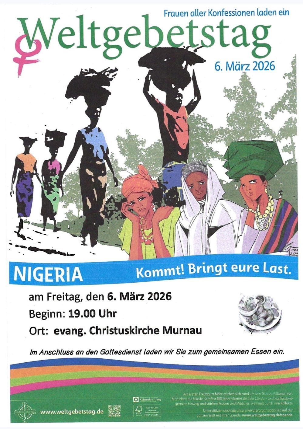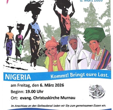 Gemeinsam Lernen, Beten, Feiern und Essen dieses Jahr mit dem Thema NIGERIA. Von Frauen aller Konfession für Jung und Alt, Mann, Frau, Divers